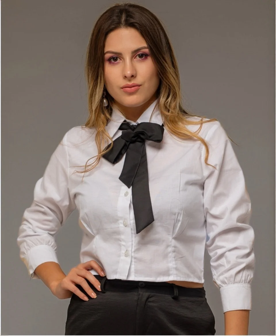 blusa con corbata negra